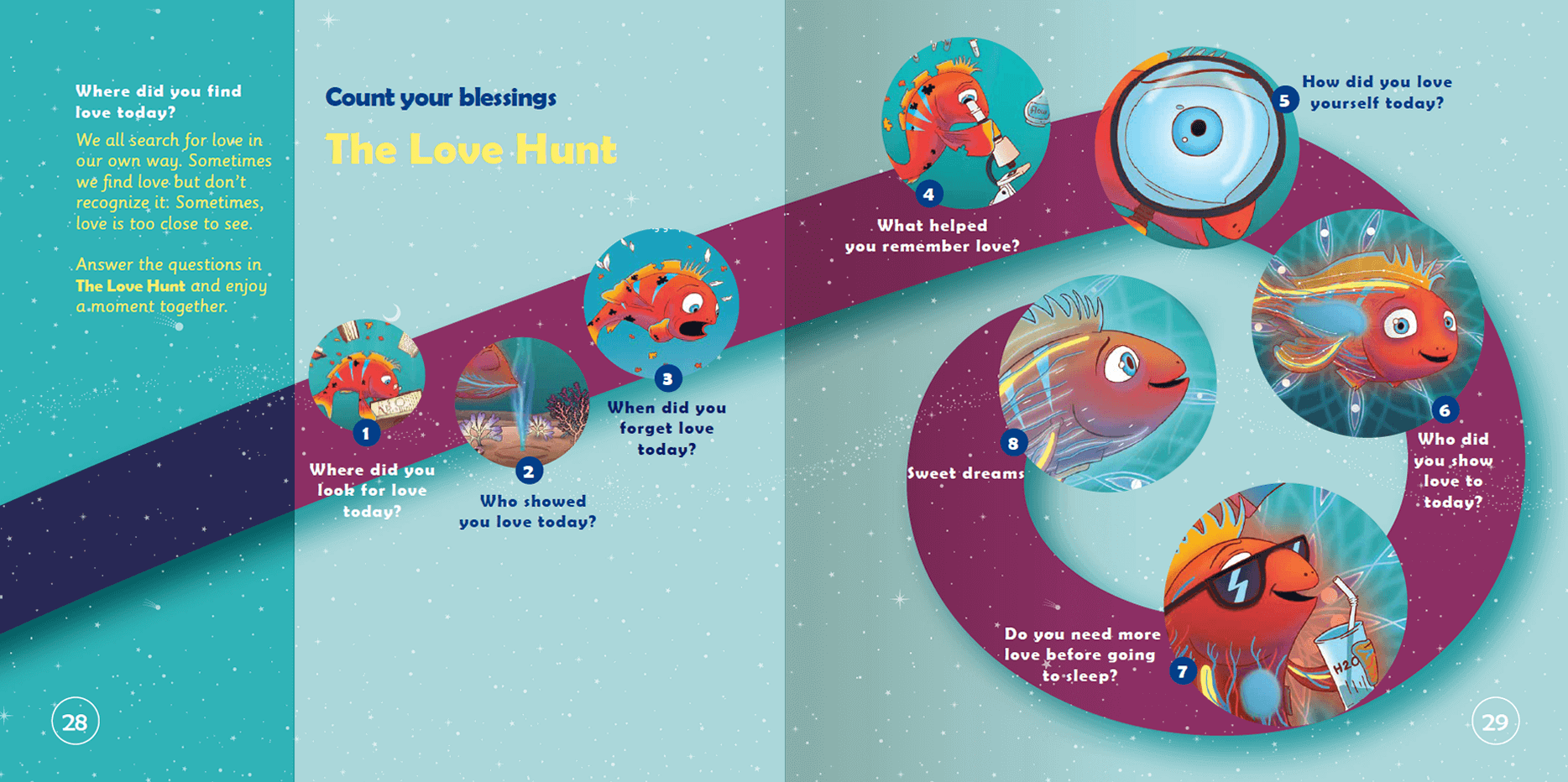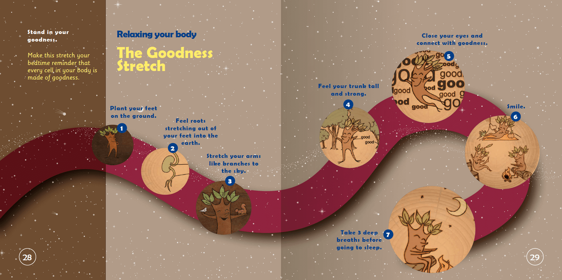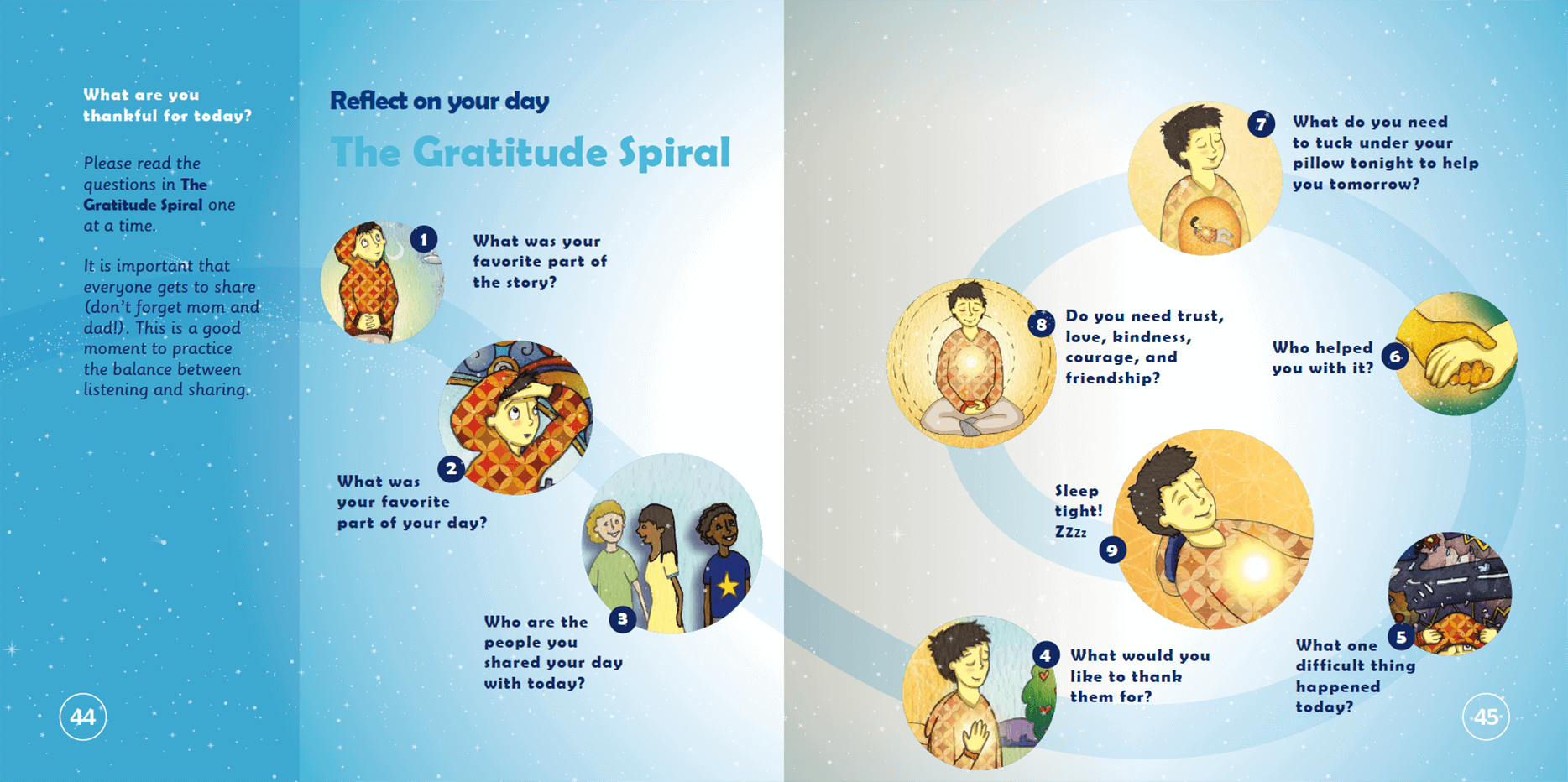 Each Conscious Bedtime Story ends with an exercise or series of questions designed to open a conscious dialogue or help children and parents get grounded, peaceful and calm before bed. You'll start to notice your children picking the book they NEED before bed, based on these practices.